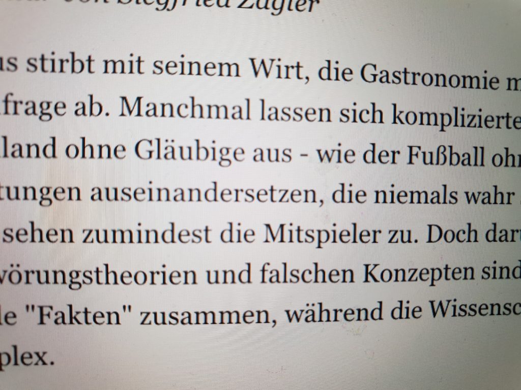 Kirche ohne Gläubige, Fußball ohne Zuschauer!? Zwei Behauptungen, die niemals wahr sein können, denn ohne Zuhörer gibt es keinen Prediger und beim Fußball sehen zumindest die Mitspieler zu. Doch darum soll es hier nicht gehen. Nur soviel: Das Unlautere von Verschwörungstheorien und falschen Konzepten sind deren Methoden: Sie stellen Behauptungen auf und tragen dazu passende „Fakten“ zusammen, während die Wissenschaft nach Fakten sucht, um sie abzugleichen und zu verstehen. Letzteres ist komplex.